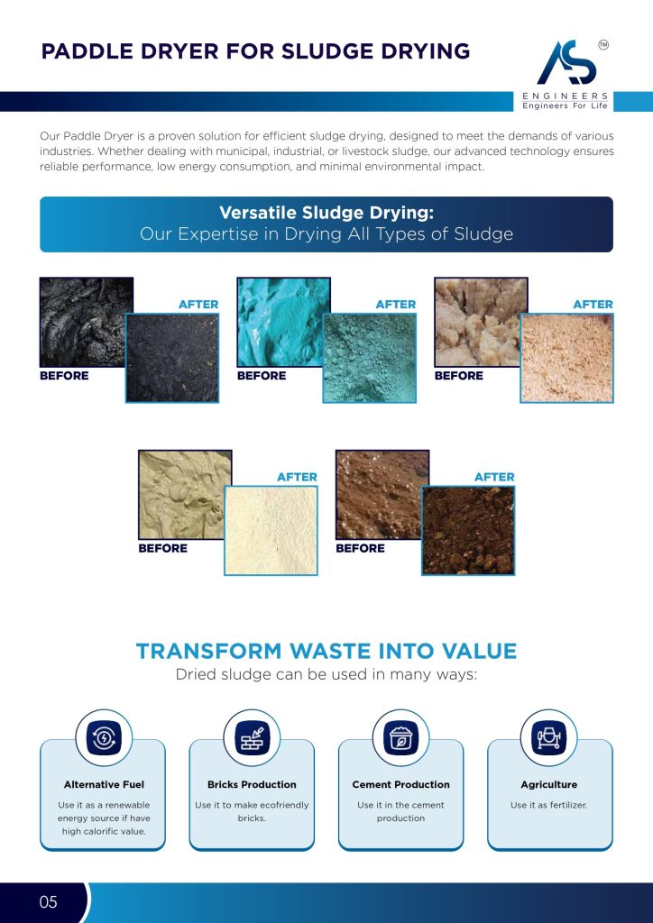 We understand the real-world challenges industries face with sludge management. That’s why we designed our paddle dryer to do more than just dry sludge—it transforms a messy, costly problem into a manageable, efficient process. Our paddle dryer uses indirect heating to gently remove moisture, reducing sludge volume, lowering disposal costs, and helping businesses meet environmental norms with ease. It’s a silent worker behind the scenes, making plants cleaner, safer, and more sustainable. Whether you run an ETP, STP, or industrial unit, our paddle dryer simplifies your sludge drying needs—reliably, efficiently, and with minimal human intervention.